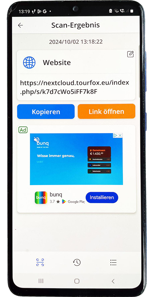 • (Optional) im Google Play Store einen QR Code Scanner installieren und laden.
